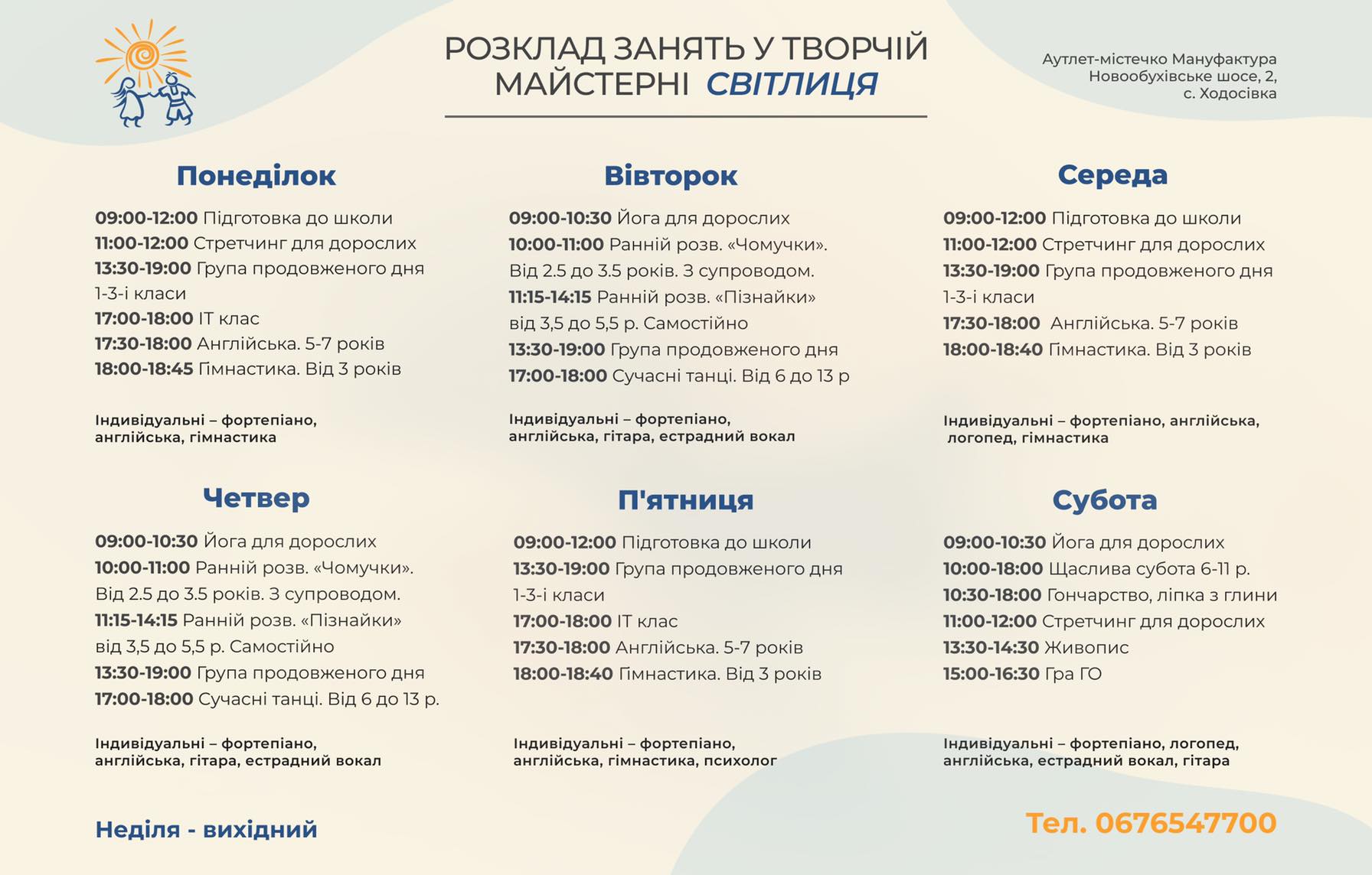 Творча майстерня «Світлиця» це освітньо-мистецький заклад розвитку для дітей та дорослих.